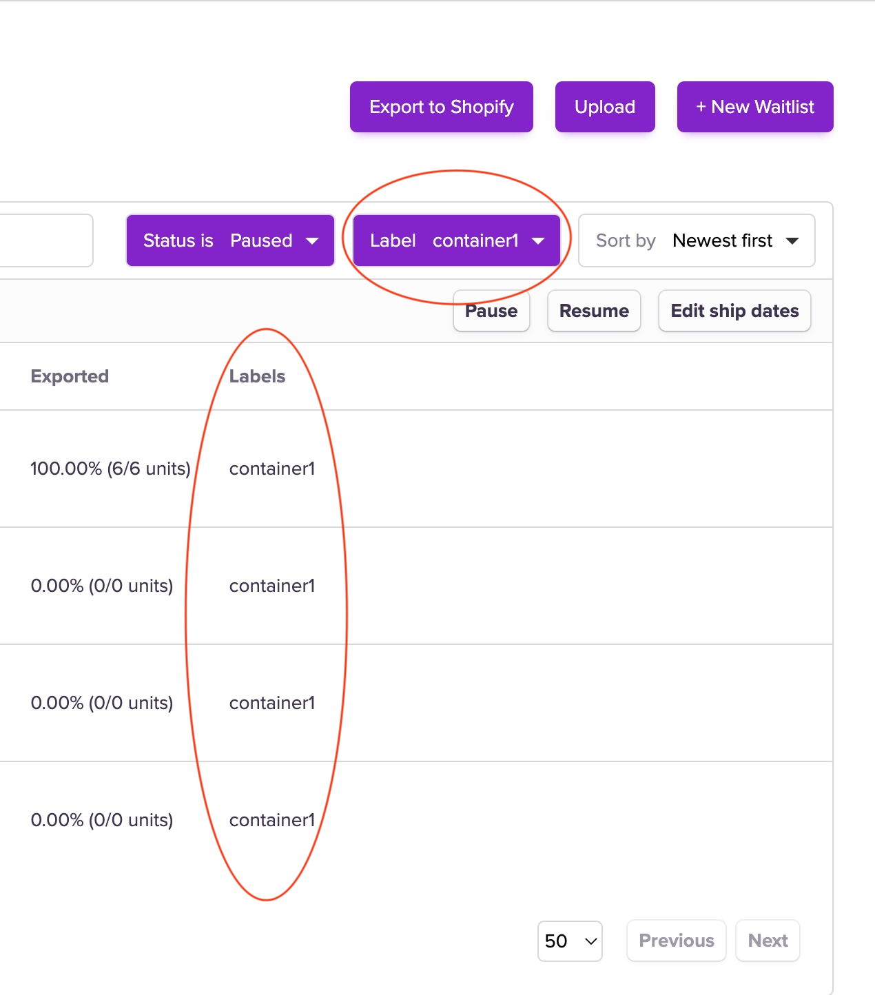 If you uploaded these waitlists via our Bulk Upload function and added labels to your waitlists, you can also filter by label to edit and update all waitlists in a certain shipment.