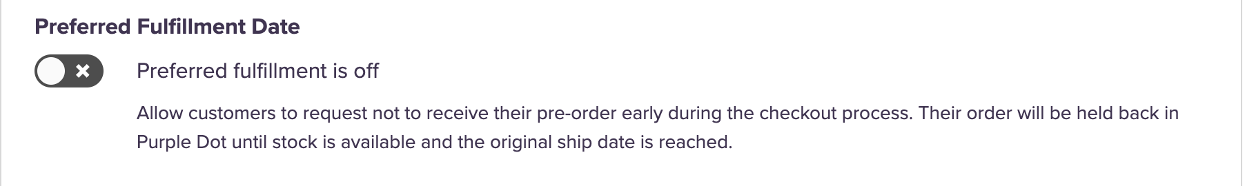 - Click Operations, then toggle the Preferred fulfilment date button to enable this feature.