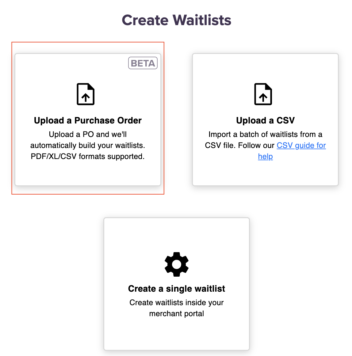 Now, you can create multiple waitlists using a Purchase Order by hitting Create Waitlist in the Waitlists tab of the dashboard.