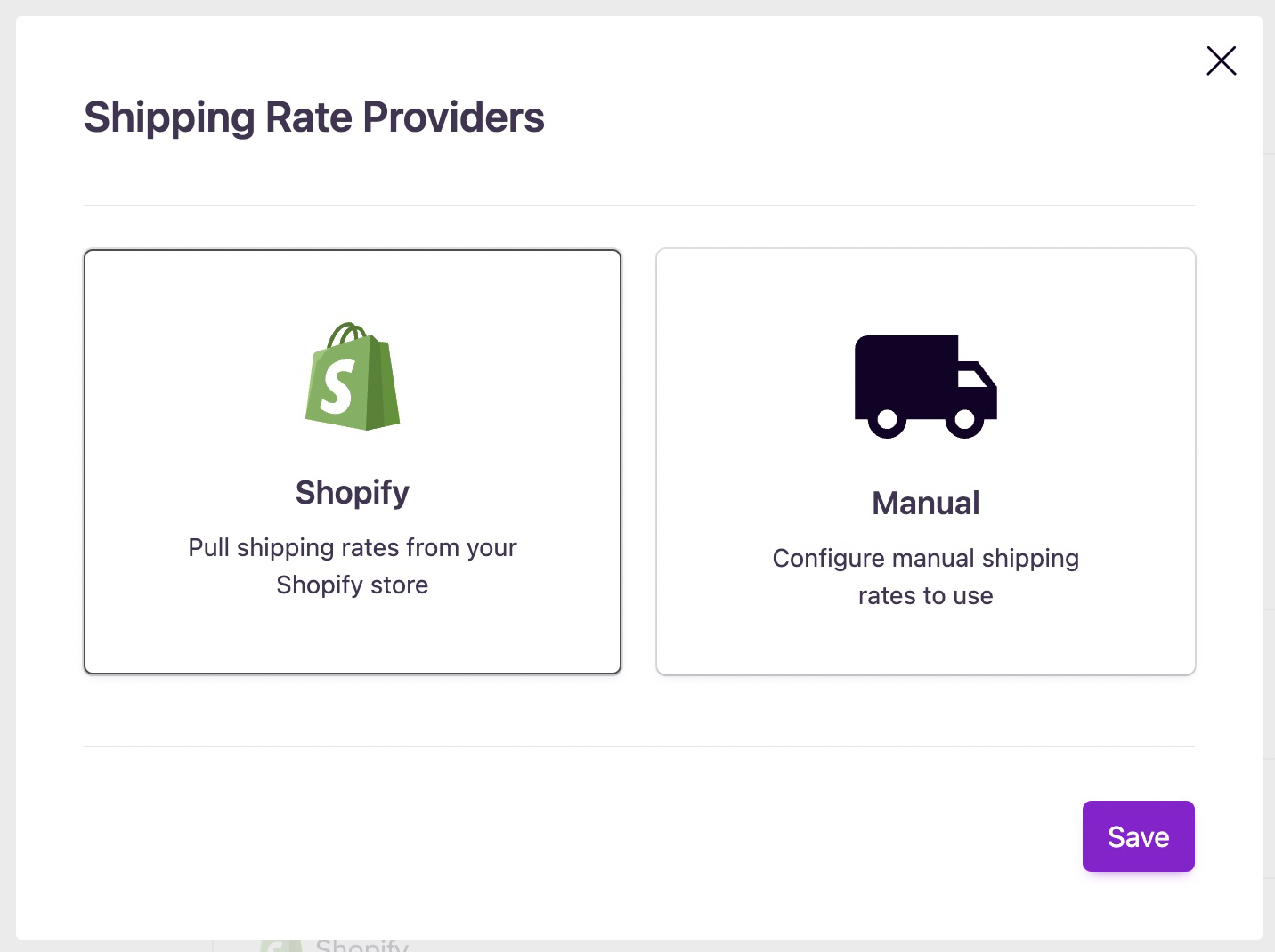 Click edit next to shipping rate provider and you can import your shipping rates from your Shopify store or configure manual shipping rates to be used.