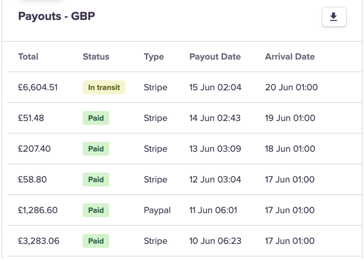 These funds will then be automatically transferred into your connected bank account and appear as a Payout within 2 - 10 business days.